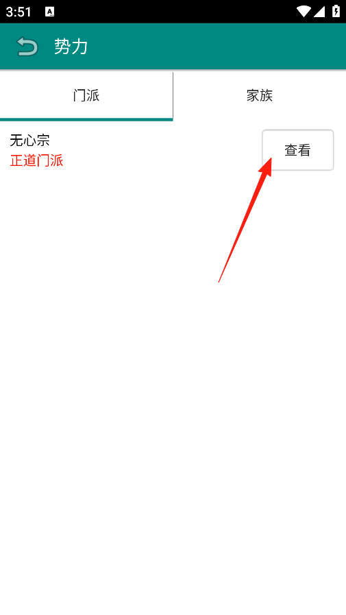 3、在势力界面,有门派和家族两个选项,现在门派里显示无心宗是正道门派,能了解这个门派的详细情况,看看加入后能学到什么功法获得什么资源,方便决定要不要加入这个门派。