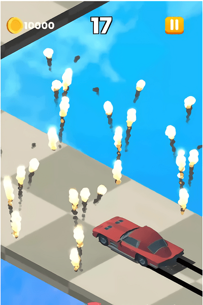 2、行驶过程中,留意路面的金币,调整汽车方向进行拾取,拾取同时需警惕道路边缘,防止车辆掉落。