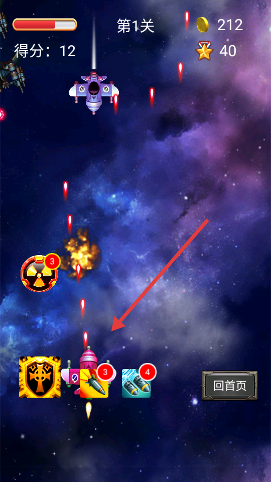 2、收集能量道具强化武器,解锁追踪导弹等特殊技能。