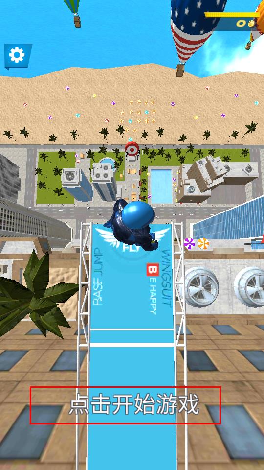 1、在天台场景点击点击开始游戏,操控角色从高台跃下,开启翼装滑翔挑战,借助场景布局启动飞行。