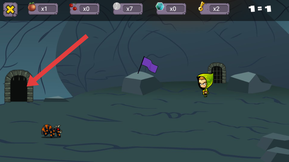 3、抵达洞穴的区域,需要避开大蜘蛛怪物,朝着已经使用钥匙打开的石门方向前进,开启新的场景探索。