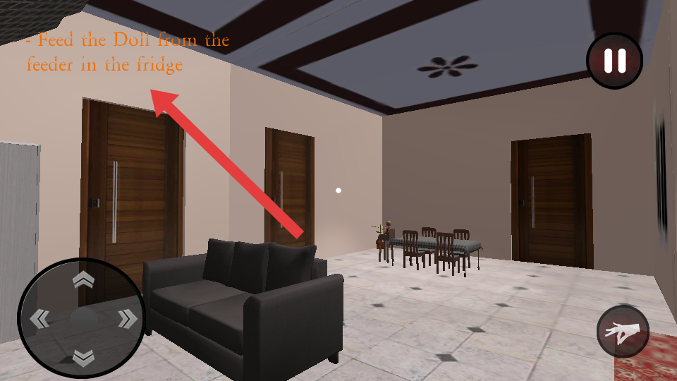 2、接取任务Feed the Doll from the feeder in the fridge,在这一层的其他房间内进行探索,寻找冰箱的位置。