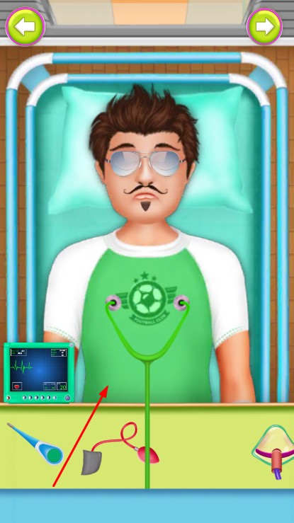 1、进入界面,点击开始按钮,选病人角色,进入诊疗环节,用体温计、血压仪等工具诊断。
