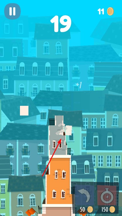 2、在房屋堆叠过程中,点击屏幕放下上方落下的房屋模块,尽量让模块精准堆叠在下方建筑上,每成功堆叠一次,分数增加。