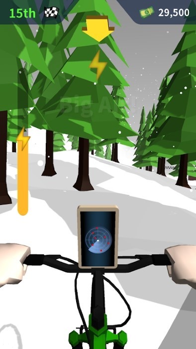 3、通过屏幕雷达自行车上平板预判对手位置,在森林、沙漠等不同赛道,灵活调整策略,狭窄路段攻击。