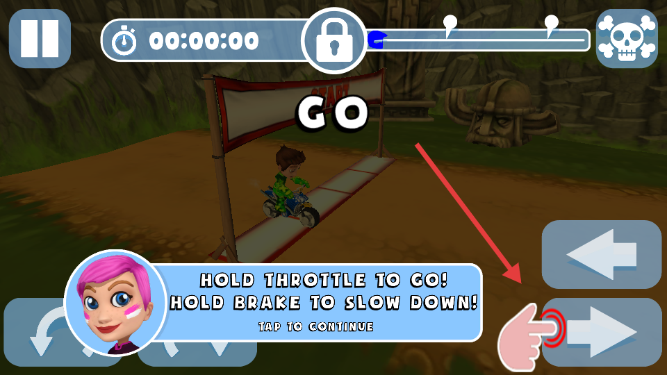 1、通过倾斜设备或滑动屏幕控制摩托车平衡与方向。