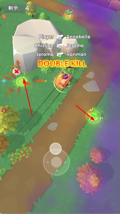 2、操控装甲车在沙漠等场景行驶,用虚拟摇杆控制方向,利用武器攻击其他玩家车辆,收集场景道具。