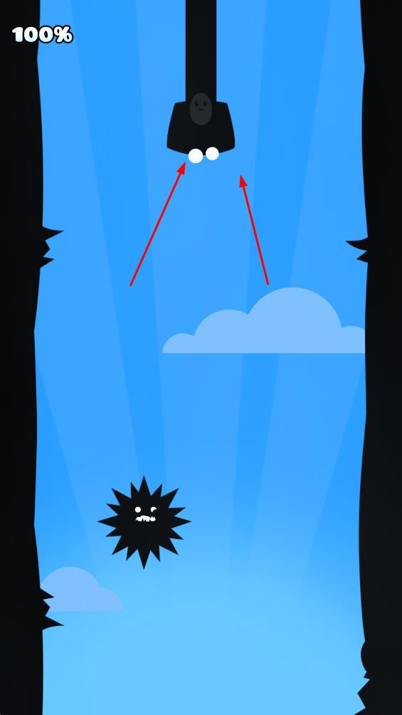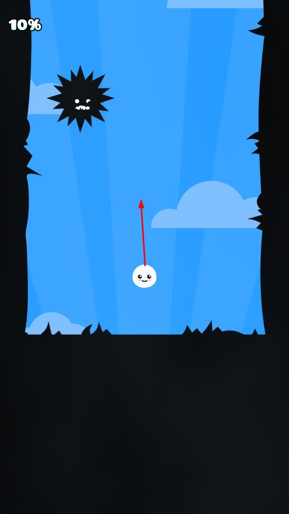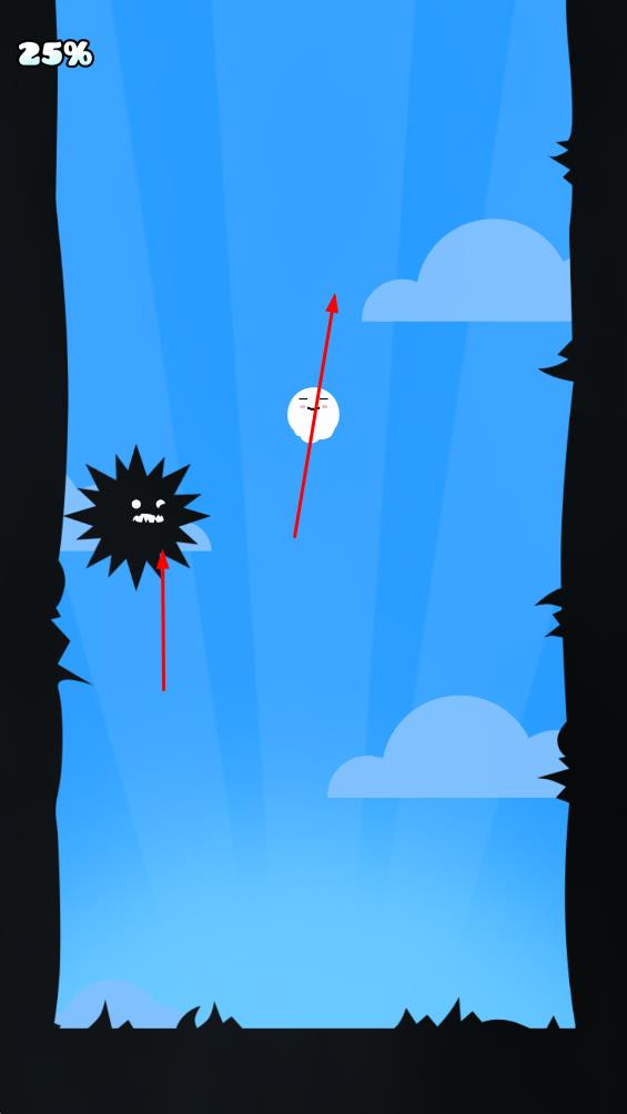 1、操控白色小球向上跳跃,留意左侧黑色刺状敌人移动,调整时机,避免碰撞。