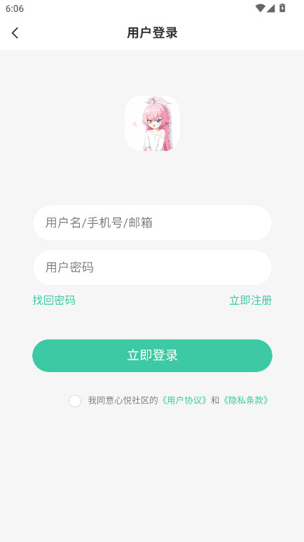 2.请输入用户名/手机号/邮箱、密码,然后勾选我同意心悦社区的《用户协议》和《隐私条款》,点击立即登录即可。