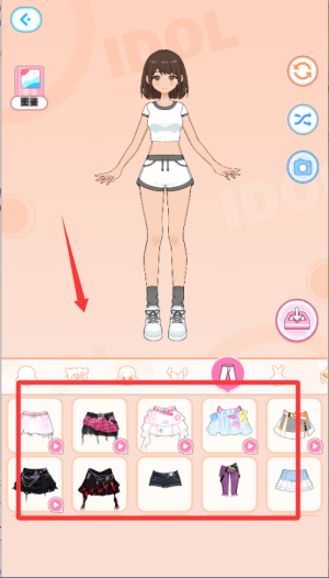 1、进入游戏后先打开衣柜界面,滑动浏览各种服装分类,比如裙子、头饰或鞋子,找到喜欢的款式点一下。