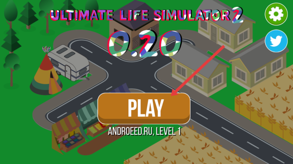 1、在ULTIMATE-LIFE-SIMULATOR-2界面,点击棕色PLAY按钮,进入Level-1的模拟人生世界,开启角色生存与发展的旅程。
