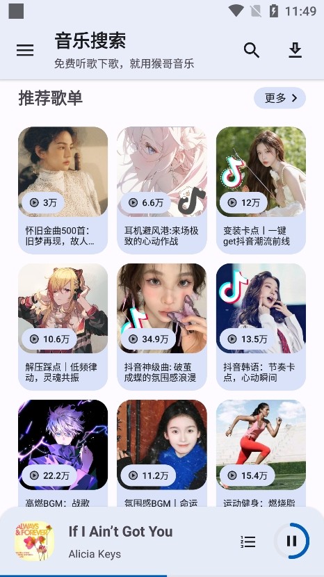 猴哥音乐拥有海量的音乐资源,几乎包含全网资源,涵盖了流行、摇滚、电子、古典等各种流派和风格的音乐作品。