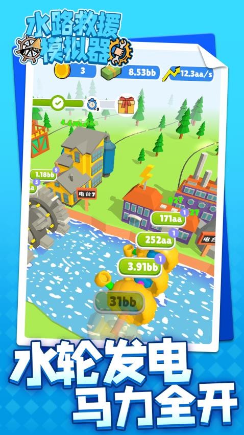 - 水路救援模拟器带来独特的水力发电经营体验,玩家将化身乡村电站规划师。通过勘察地形、架设水轮机组,将自然水流转化为可用电力。游戏真实模拟水文动态,
