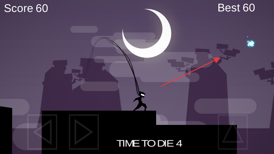 3、积累得分后,角色绳索机制拖曳线条,借助绳索跨越宽沟、高坡,探索远处场景,持续挑战。