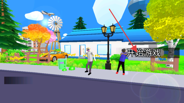 1、进入游戏初始场景,找到开始游戏按钮并点击,开启在卡通风格小镇的冒险,可探索场景内建筑、互动元素。