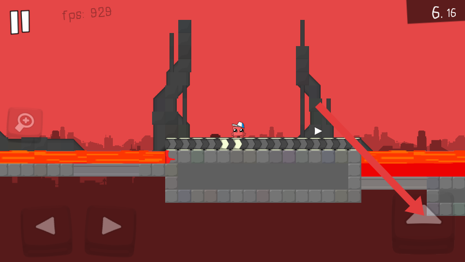 2、碰到斜坡,长按右箭头加速攀爬;过齿轮陷阱,把握时机快速冲刺,借助右上角fps性能数值判断流畅度。