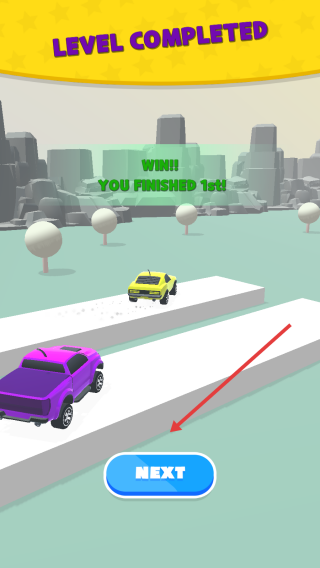 3、获WIN! YOU FINISHED1st,点击NEXT进新关卡,积累换道、竞速技巧,挑战更高难度。