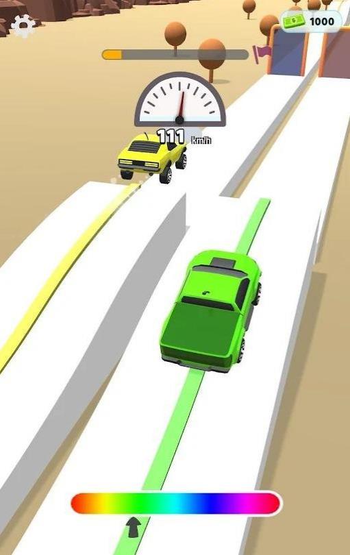 3、高分冲刺方法:保持颜色连续匹配触发连击加成效果,优先选择颜色切换频率低的赛道段加速,利用赛车技能延长颜色容错时间提升生存距离。