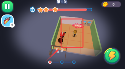 1、进入游戏后先熟悉操作,点击屏幕就能让消防员移动,滑动可调整视角,简单上手。