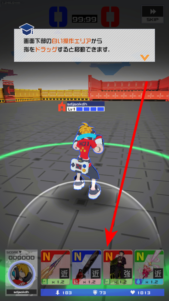 1、进入战斗场景后,通过手指拖动来控制角色移动,下方配置多种攻击卡牌,合理拖动操作区移动角色,便于后续选择卡牌攻击敌人,灵活调整站位应对战斗。