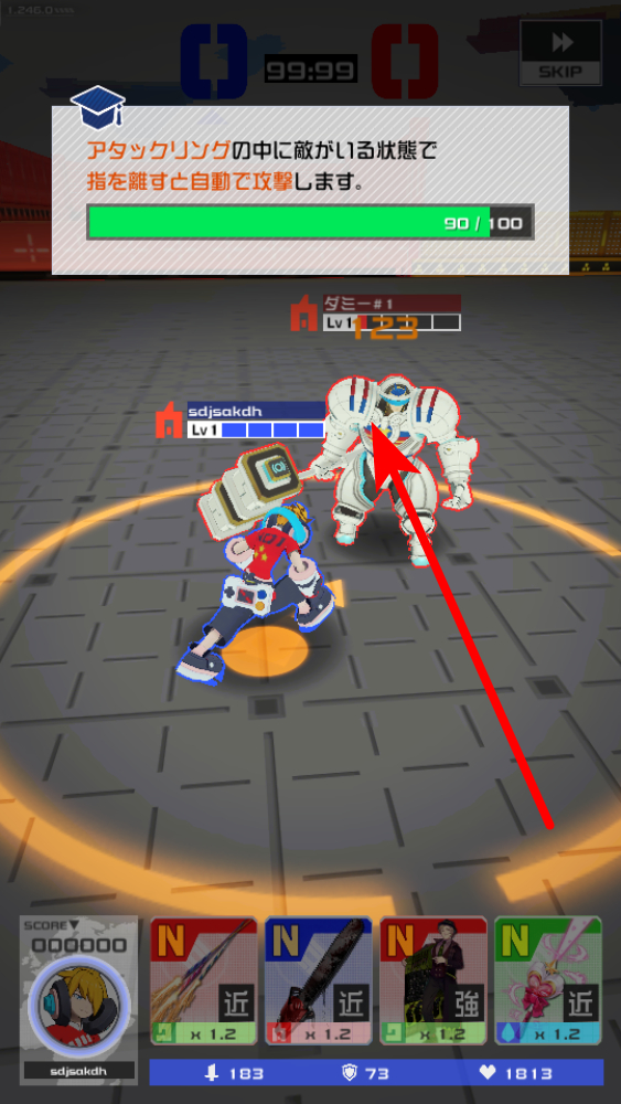 2、战斗中保持手指按住蓄力,待敌人处于攻击范围内,松开手指即可让角色自动攻击敌人,注意观察敌人位置与蓄力进度,把握时机释放攻击,高效打击对手。