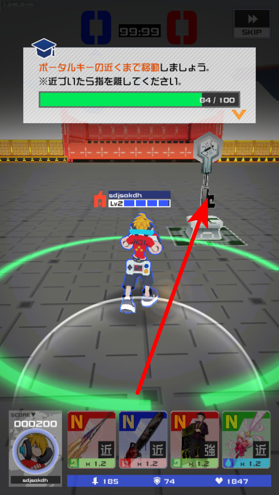 3、若出现传送门钥匙,需拖动操作区控制角色移动靠近它,当靠近传送门钥匙后,按照提示松开手指完成交互,这可能助力角色升级,推动战斗进程与角色成长。
