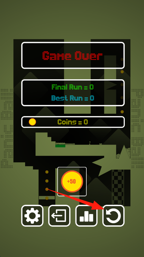 3、游戏结束后,点击右下角箭头循环按钮,重新开始游戏,尝试突破最佳成绩,点击重开游戏。