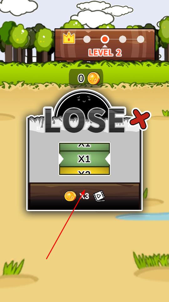 3、若战斗失败,观察弹出来的LOSE界面,可选择领取金币奖励如×3或观看广告,重启挑战。