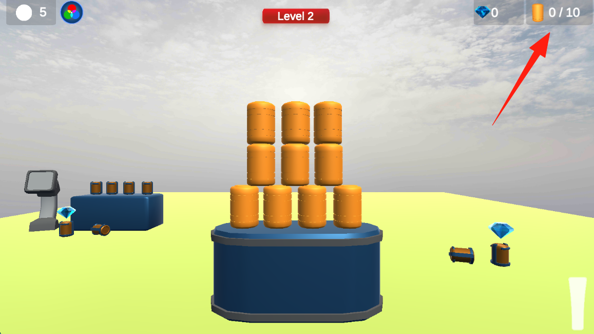 2、Level-2时,留意右上角木桶收集进度,规划撞击路径,持续击碎橙色木桶推进关卡。