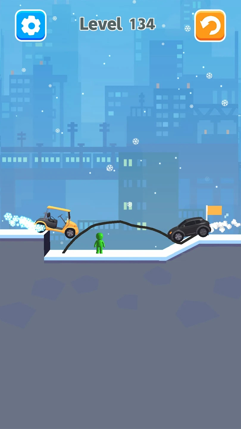 3、游戏中玩家通过画线搭建桥梁,这样就可以帮助汽车通过无法形成的地方。