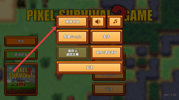 1、在PIXEL-SURVIVAL-3-GAME的设置界面,点击简体中文按钮,切换游戏语言,便于后续操作与剧情理解。