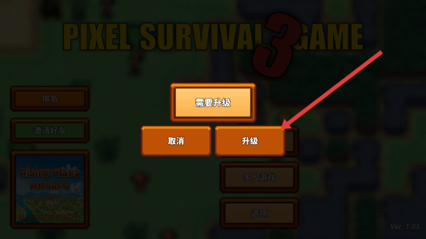 3、当弹出需要升级提示时,点击升级按钮,提升游戏内容,为解锁单人游戏模式做准备。