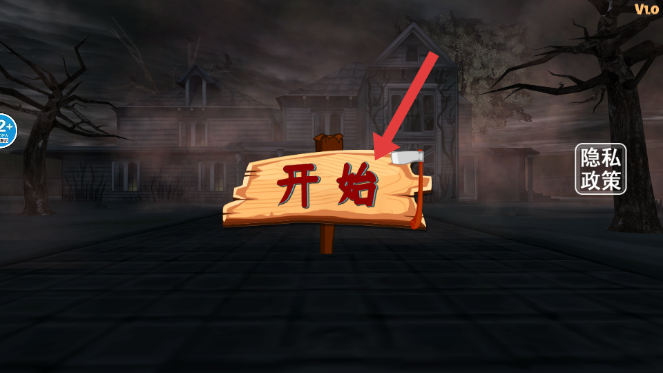 1、进入游玩的页面,点击屏幕的开始的木牌进入选择的关卡,开启了新的恐怖的房屋的冒险。