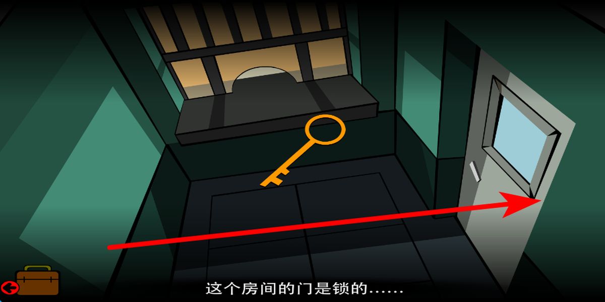 3、遇到锁着的房间,确认是否有对应钥匙,使用钥匙尝试开门,若没有就回到之前场景,重新搜索线索,通过解开其他关联谜题,获取开门办法。