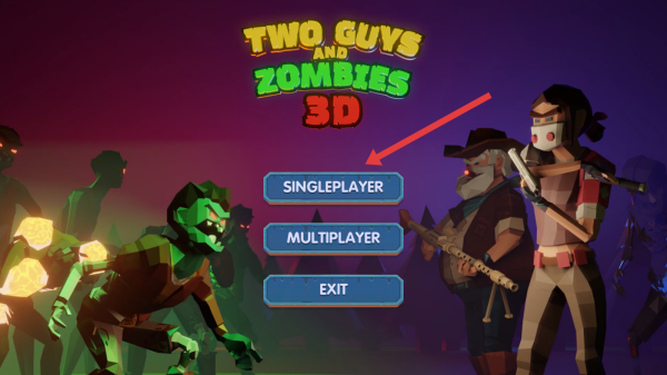 1、在TWO-GUYS-AND-ZOMBIES-3D界面,点击SINGLEPLAYER按钮,进入单人模式的角色选择环节。