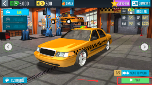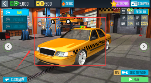 1、进入车库界面浏览各类出租车车型,根据任务需求挑选最适合的载具。