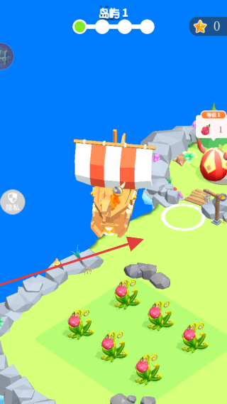 1、进入岛屿1场景,操控角色朝帆船旁白色光圈移动,探索岛屿初始区域,可留意周边植物、道具,为后续冒险做准备。