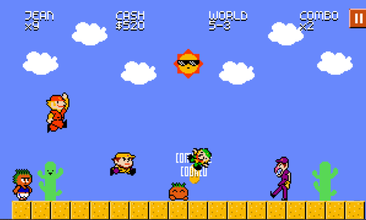 跳跃的吉恩是一款精彩的跳跃闯关佳作,它类似采蘑菇的玩法,玩家在此控制名叫吉恩的角色进行闯关,可跳跃起来踩死各种怪物,收集金币获得更高分数,最后到达指定终点即可,为喜欢这类玩法的玩家带来别样的闯关乐趣。