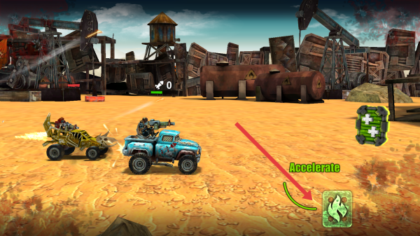 2、在载具场景中,点击右下角标有Accelerate的绿色按钮,让己方载具加速,提升战斗机动能力。