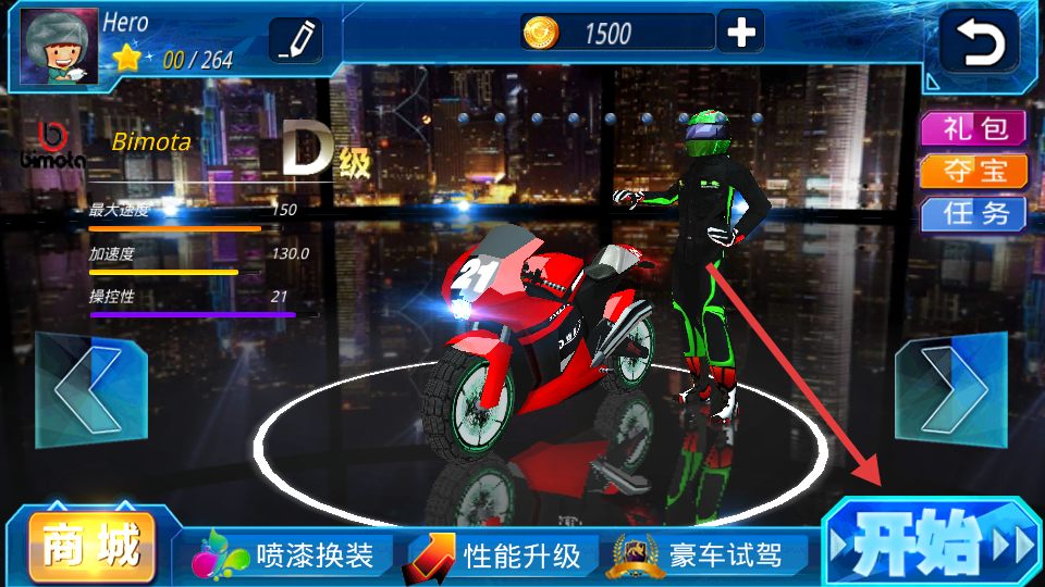 2、车辆改装:从街头摩托到专业赛车共分五个等级,每辆车配备独立的悬挂调校界面,前叉角度与轮胎抓地力参数直接影响过弯性能。