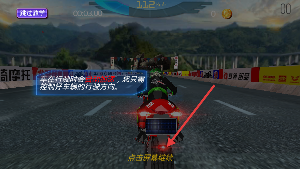 1、通过重力感应或虚拟按键控制摩托平衡,长按加速键触发极速模式。