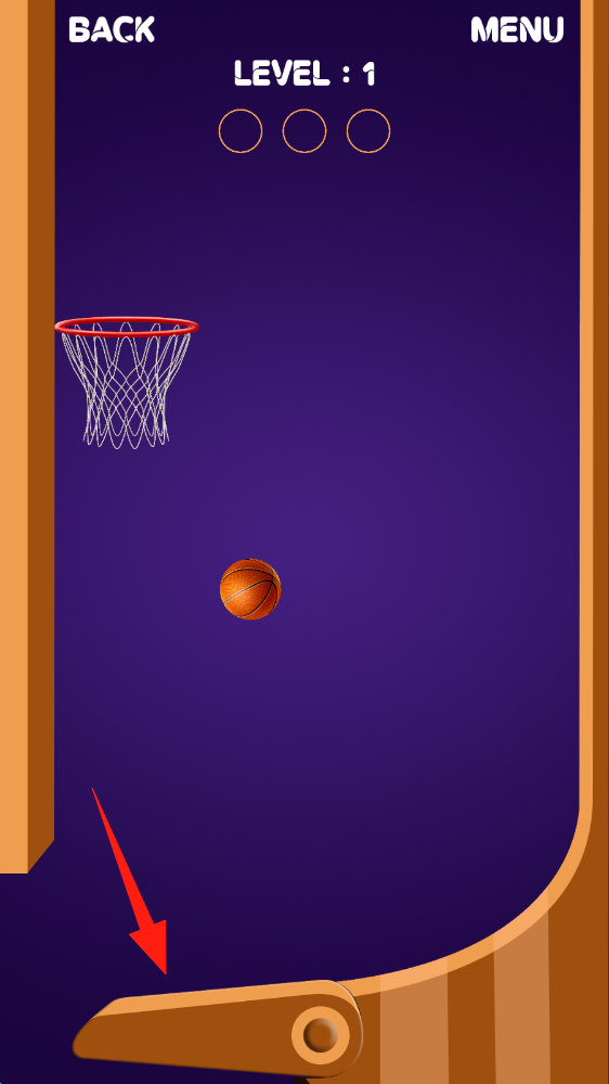 2、关卡中看准时机,点击下方弹板,将篮球弹起,尝试投入篮筐,点击屏幕弹射起步。