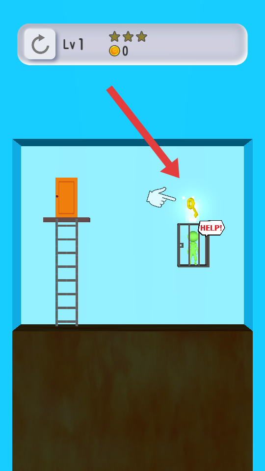 1、在Lv1时需要先获取笼子上方的钥匙救出绿色小人,再操控小人通过梯子抵达橙色门,完成关卡目标。