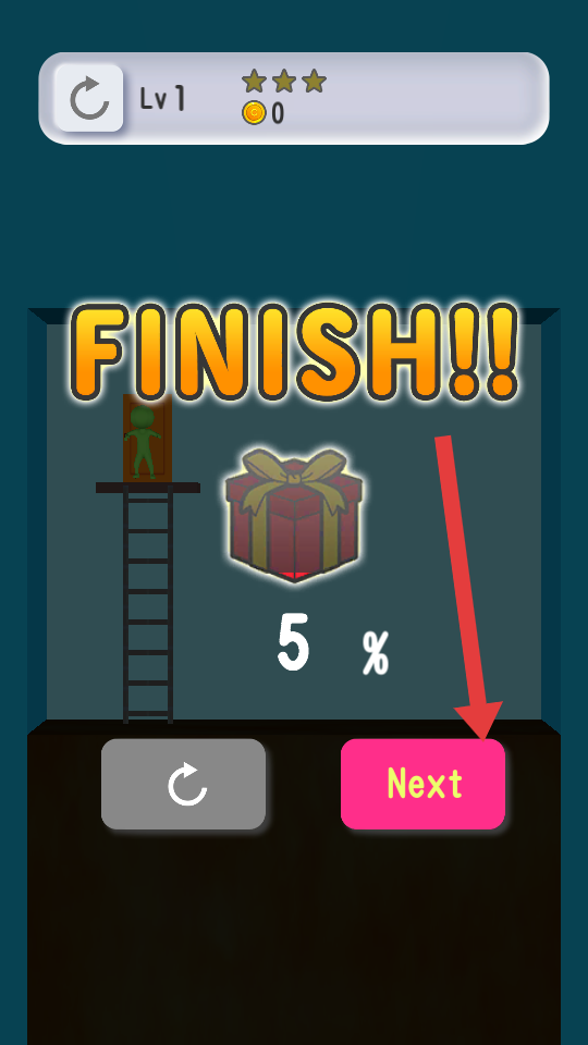 2、如果Lv1通关后,需要点击粉色Next按钮,进入下一关,同时可以查看关卡进度奖励如5%进度提示。