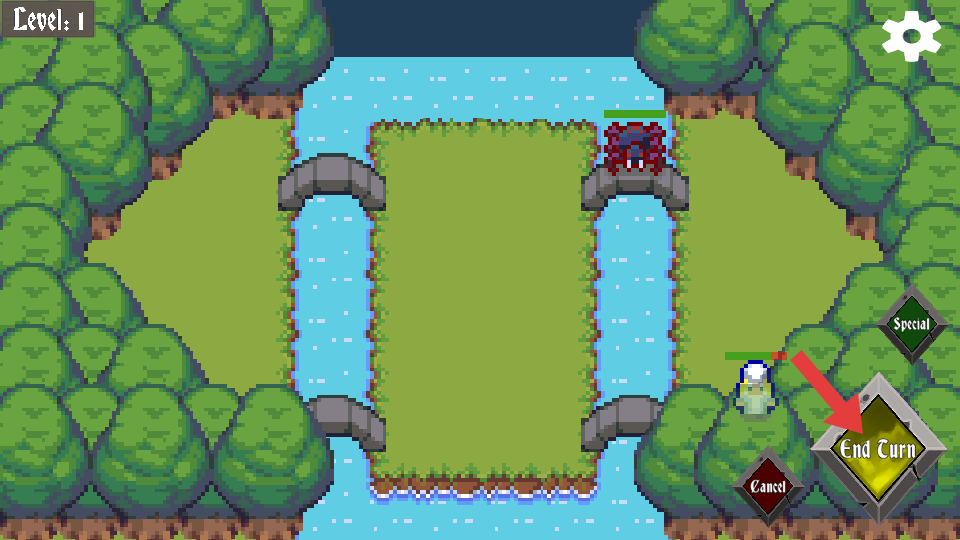 3、规划角色移动路线,借助桥梁跨越水域,调整至安全站位后,点击End Turn,应对敌方下一阶段行动。