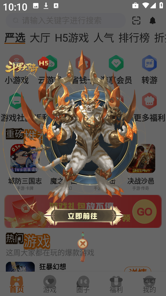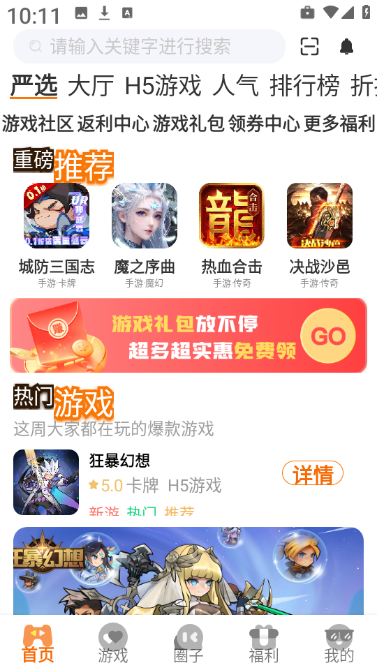 2、主页包含了云游戏,游戏社区,返利中心,游戏礼包等多个版块。