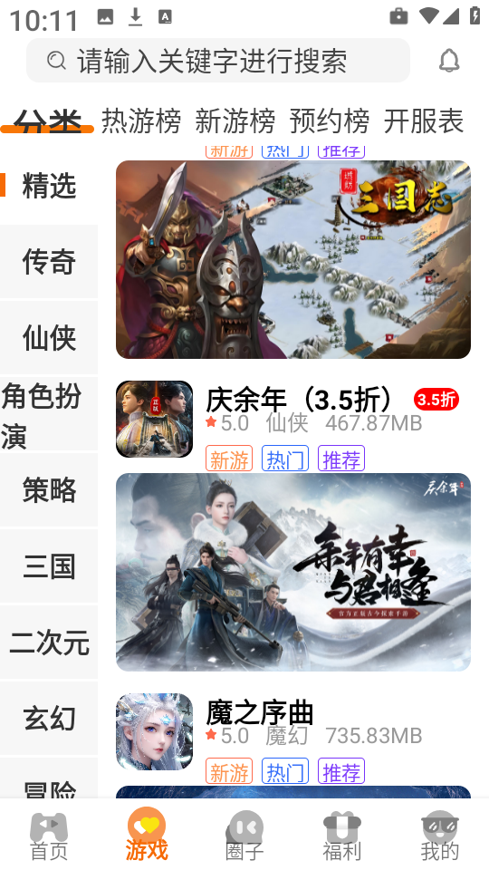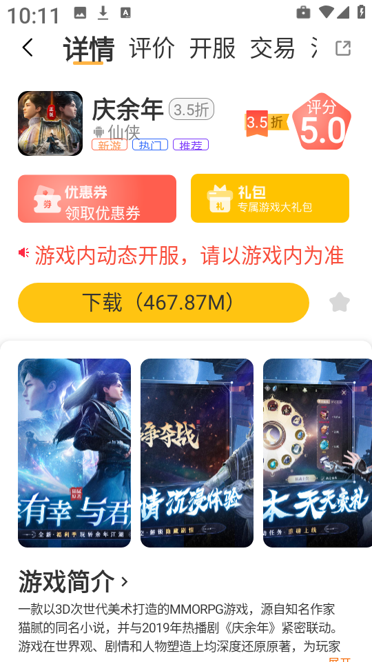 4、任意选择一款喜欢的游戏,这里小编以“庆余年”游戏为例,直接点击“下载”即可。