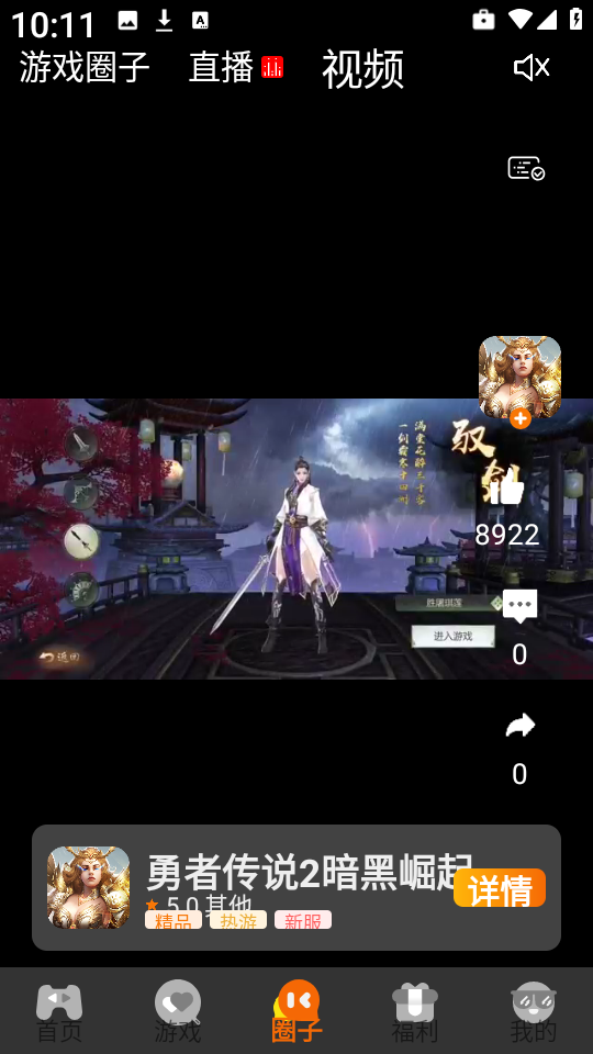 5、然后点击下方的“圈子”,还可以实时播放需要的游戏视频。