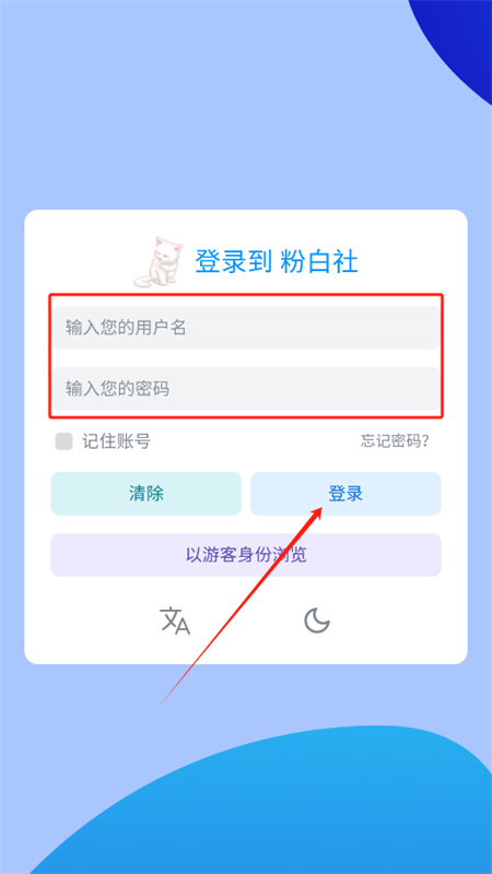 1、在本站下载安装好最新版的粉白社,打开软件。