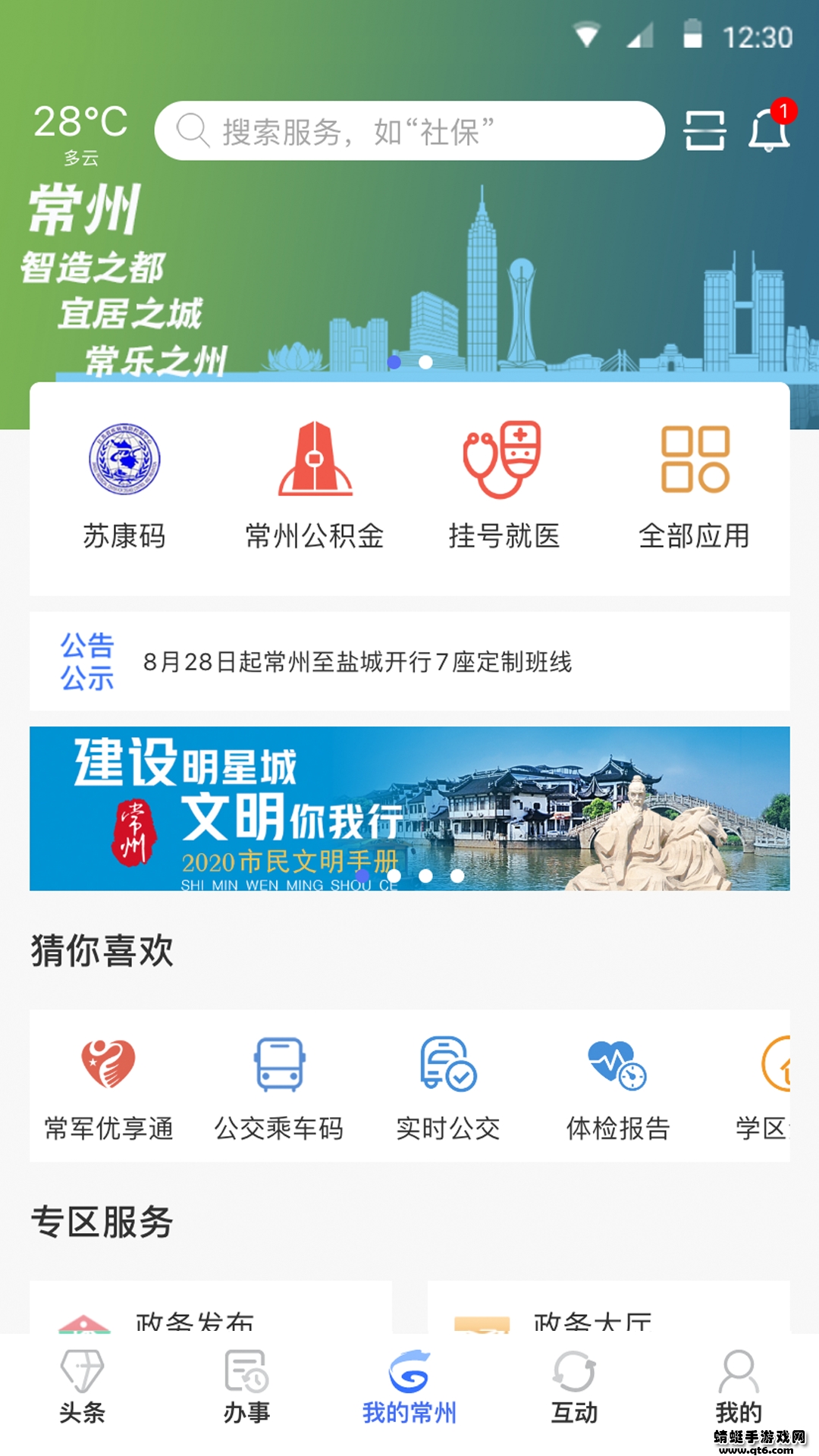 我的常州app是常州市民服务软件,在我的常州app里有苏康码、常州公积金、挂号就医、常州优享通、公交乘车码、实时公交等服务。常州市民还能在我的常州app上查看分配的学区。